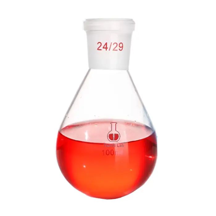 Eggplant shape flasks are generally glass instruments used for heating chemical substances. The materials used are relatively strict. They use high borosilicate glass, which is thin, uniform, and resistant to sudden cooling and heating. Its thermal expansion coefficient is extremely low, only one-third of ordinary glass. This material is not only resistant to high temperatures, but also can withstand drastic temperature changes of 200 degrees, ensures stability during the experiment. It has high hardness, high transparency and corrosion resistance.The lower part is round-bottomed and the upper part gradually narrows. This special shape not only helps stir the solution and reduce the generation of bubbles during the reaction, but also increases the exposed area of the liquid surface, thereby accelerating the reaction process. In addition, eggplant shape flasks are often used in conjunction with rotary evaporators and are widely used in experimental operations such as drug extraction, solvent extraction, and soaking. The unique design of the eggplant shaped flask enables it to be heated evenly during the heating process, reduces the risk of local overheating. It ranges from 10ml to 3000ml to meet different experimental needs and is extremely flexible.