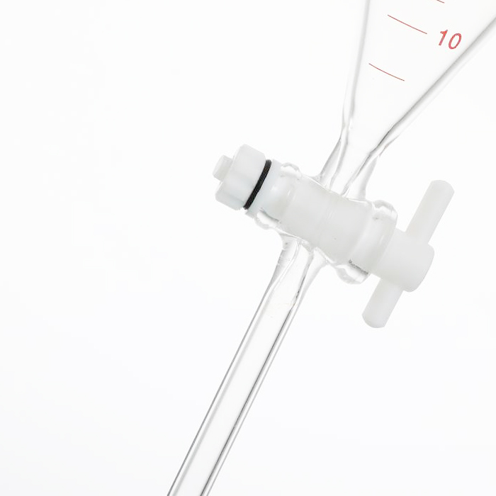 The separatory funnel facilitates oscillation and mixing, allows the internal liquid to be fully mixed during oscillation. Before performing operations such as extraction, the solution to be extracted and the extraction agent need to be fully mixed. The oscillating function of the separatory funnel can mix the two quickly and evenly, improving extraction efficiency. The existence of the scale can facilitate the user to accurately measure and control the volume of liquid added or dispensed, making the experimental operation more accurate and repeatable, which is especially important for experiments that require precise control of the amount of reagents.