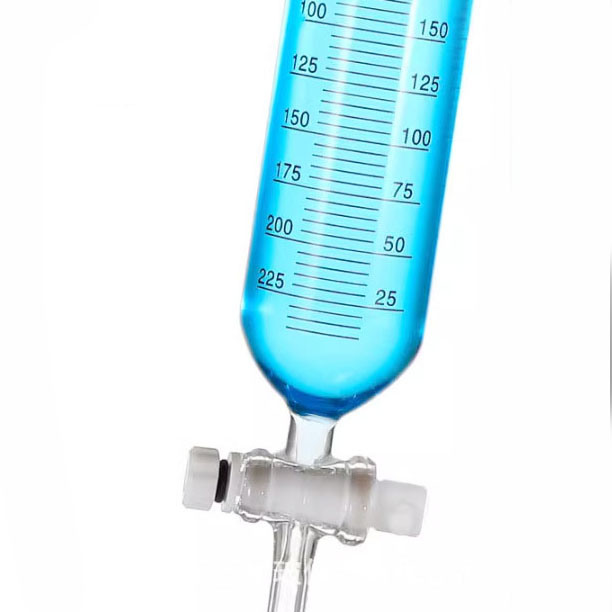 The main body of the cylindrical separatory funnel is a slender vertical cylindrical glass tube. This shape makes the layered interface formed by the internal liquid more regular when in use. Compared with other shapes of separatory funnels (such as spherical, pear-shaped, etc.), it is easier to control and observe during layered separation, and can more accurately separate liquids of different phases. The neck is long and straight, which is conducive to the up-and-down convection and full stirring of the liquid when performing extraction or other operations that require full mixing of liquids, allows solutes to transfer between different solvents more efficiently, thus improvs extraction efficiency and separation effects. . For example, when conducting extraction experiments of organic compounds, a cylindrical separatory funnel can better mix and contact the organic phase and the aqueous phase, thereby promoting the extraction process.