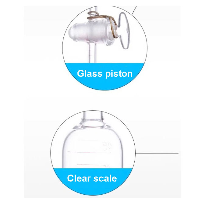 The gas sample measuring burette has a flexible piston, flexible rotation, and no leakage; the pagoda head, multiple hoops, sharp edges and corners, tight connection, and not easy to slip; fine craftsmanship and a first-class team of lighting workers meet the experimental requirements; fine workmanship, smooth and round surface, no burrs and defects; good light transmittance, high transparency, beautiful and elegant; accurate scale, clear and easy to read, wear-resistant and no scratches.
