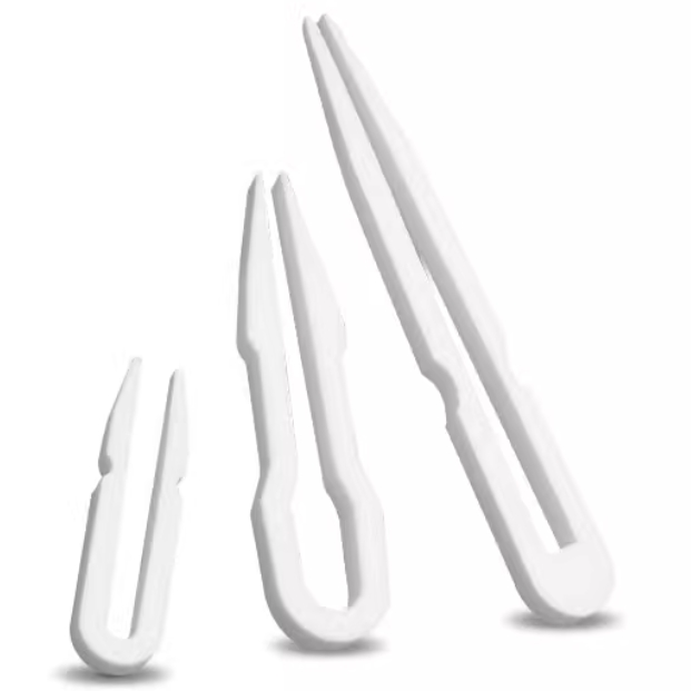 PTFE tweezers are a type of tweezers made of polytetrafluoroethylene (PTFE), also known as PTFE tweezers, Teflon tweezers, F4 tweezers, etc. They are available in pointed, flat, serrated, and other shapes. Pointed tweezers are used to clamp relatively small samples; flat tweezers are used to clamp sheet-shaped and thin samples to avoid the sample slipping due to the small contact area during clamping; serrated tweezers are more convenient and practical for clamping special samples.