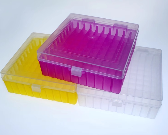 Plastic cryotube boxes are containers made of low-temperature-resistant, chemically stable plastic materials. They have good sealing properties to prevent contamination from external factors and leakage of internal substances. They are reasonably designed and available in a variety of specifications. They have slots or grids inside to facilitate neat storage of cryotubes and prevent collisions. The box body is clearly labeled for easy labeling of sample information.