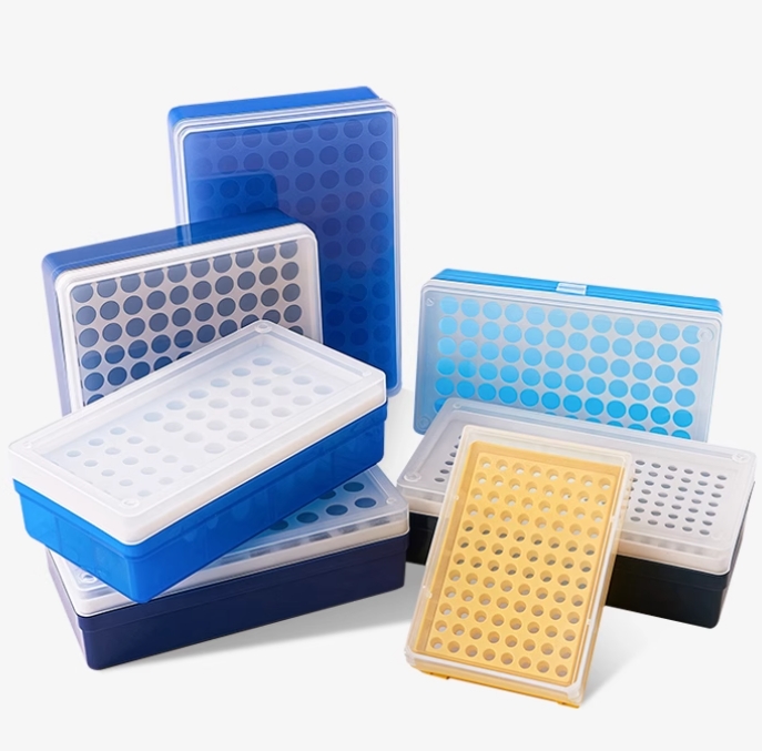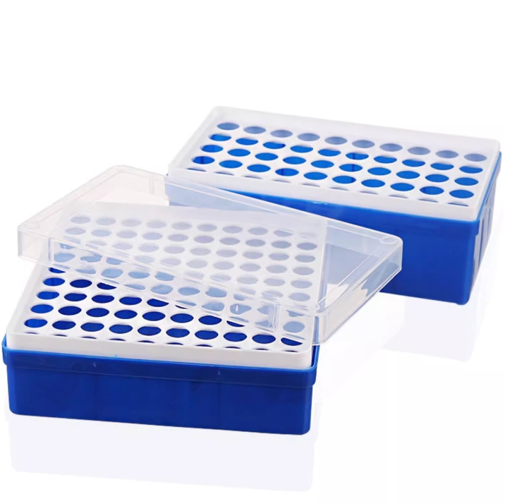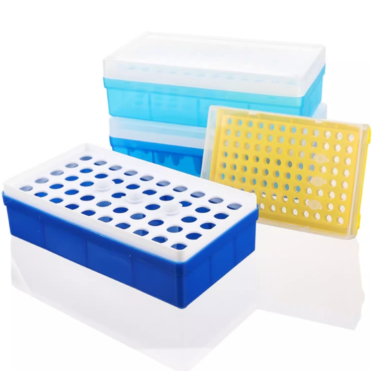 Plastic centrifuge tube boxes are containers for storing plastic centrifuge tubes, usually made of plastic materials. Generally, plastics with certain strength and toughness are used, such as polypropylene. It is designed with multiple compartments or slots to tightly fix the centrifuge tubes to prevent the centrifuge tubes from shaking, colliding and being damaged during storage and transportation.