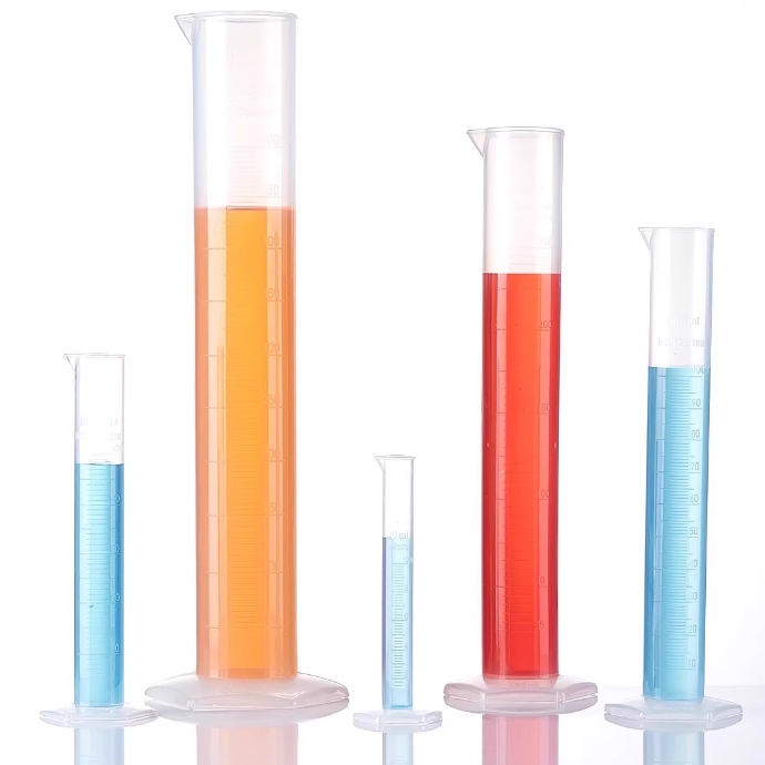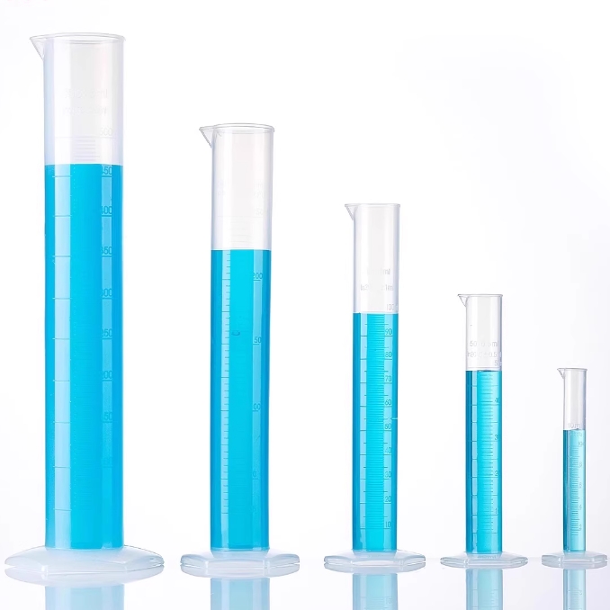 Measuring cylinder is a common measuring tool used in the laboratory to measure the volume of liquids. The PP material has a low density, is lightweight, is stable to water, has good resistance to bending fatigue, and is resistant to a variety of chemical reagents. It is expressed in terms of the maximum capacity that can be measured (mL). Commonly used ones are 10mL, 25mL, 50mL, 100mL, 250mL, 500mL, 1000mL, etc. The outer wall scale is in mL. The larger the measuring cylinder, the thicker the tube diameter, and the lower the accuracy. There is no "0" scale, and the general starting scale is 1/10 or 1/20 of the total volume. When using it, wait for 1-2 minutes after injecting the liquid to allow the liquid attached to the inner wall to flow down, and then read the scale value.