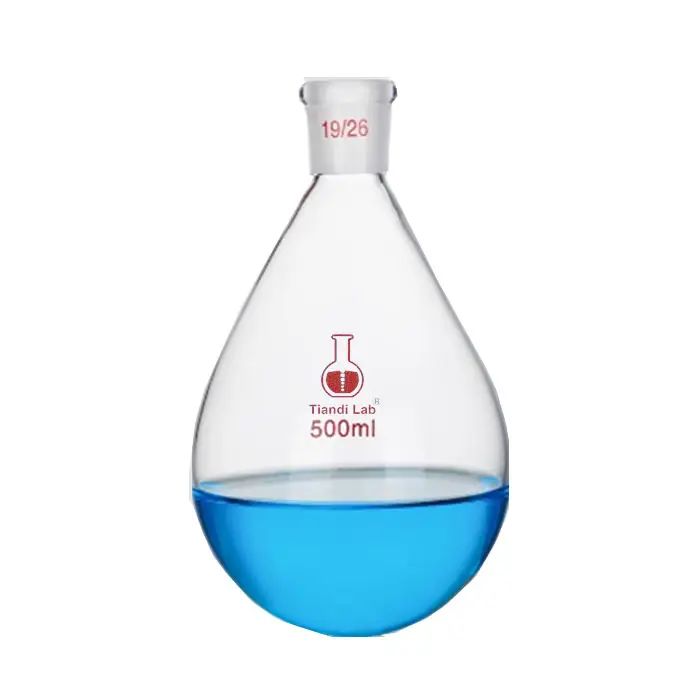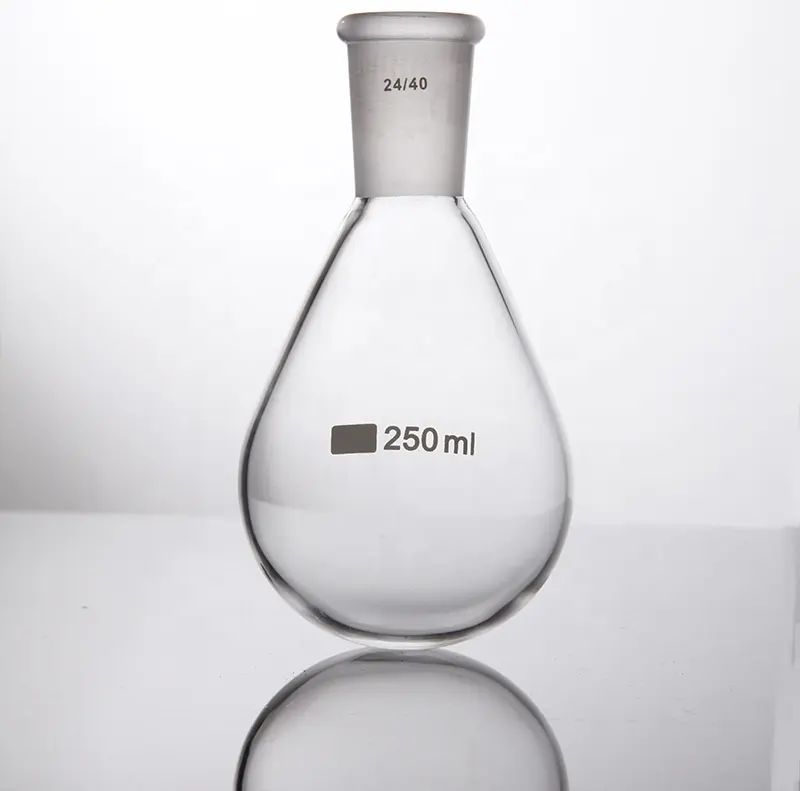 Eggplant shape flasks are generally glass instruments used for heating chemical substances. The materials used are relatively strict. They use high borosilicate glass, which is thin, uniform, and resistant to sudden cooling and heating. Its thermal expansion coefficient is extremely low, only one-third of ordinary glass. This material is not only resistant to high temperatures, but also can withstand drastic temperature changes of 200 degrees, ensures stability during the experiment. It has high hardness, high transparency and corrosion resistance.The lower part is round-bottomed and the upper part gradually narrows. This special shape not only helps stir the solution and reduce the generation of bubbles during the reaction, but also increases the exposed area of the liquid surface, thereby accelerating the reaction process. In addition, eggplant shape flasks are often used in conjunction with rotary evaporators and are widely used in experimental operations such as drug extraction, solvent extraction, and soaking. The unique design of the eggplant shaped flask enables it to be heated evenly during the heating process, reduces the risk of local overheating. It ranges from 10ml to 3000ml to meet different experimental needs and is extremely flexible.