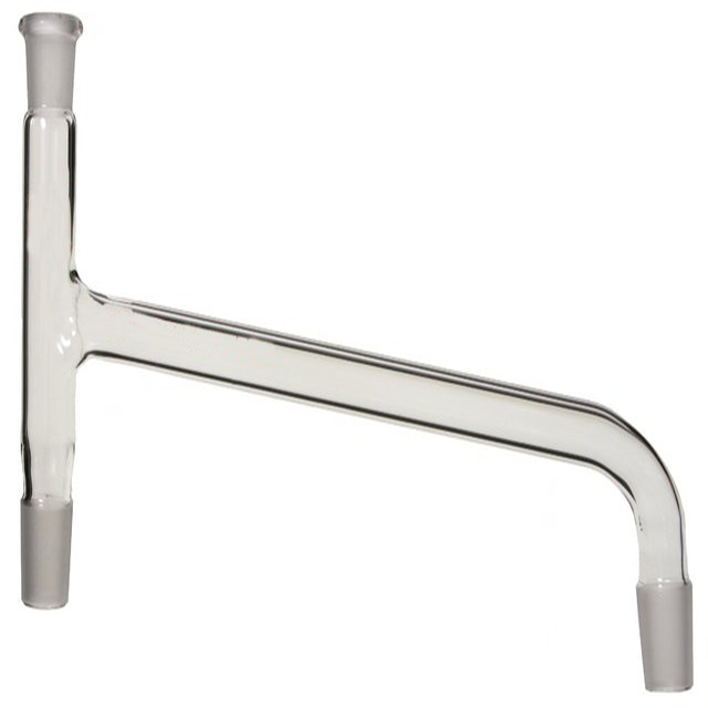 Distilling head bent with standard ground mouth is a standard ground glass instrument used in the laboratory. It is mainly used to connect other glass instruments for distillation operations. Standard ground glass instruments have good sealing performance and are especially suitable for certain volatile and toxic substances, or organic substances that are not suitable for contact with rubber stoppers. Suitable for various laboratory operations, especially for connecting flasks and distillation tubes in organic synthesis. The distilling head usually has a downward slope design of , which helps the liquid flow into the distillation tube smoothly and improves distillation efficiency. Before use, the grinding mouth should be sealed with Vaseline to achieve the best sealing effect.