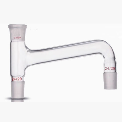 Distilling head 105°-75° with standard ground mouth is a standard ground glass instrument used in the laboratory. It is mainly used to connect other glass instruments for distillation operations. Standard ground glass instruments have good sealing performance and are especially suitable for certain volatile and toxic substances, or organic substances that are not suitable for contact with rubber stoppers. Suitable for various laboratory operations, especially for connecting flasks and distillation tubes in organic synthesis. The distilling head usually has a upward slope design of 105°-75°, which helps the liquid flow into the distillation tube smoothly and improves distillation efficiency. Before use, the grinding mouth should be sealed with Vaseline to achieve the best sealing effect.