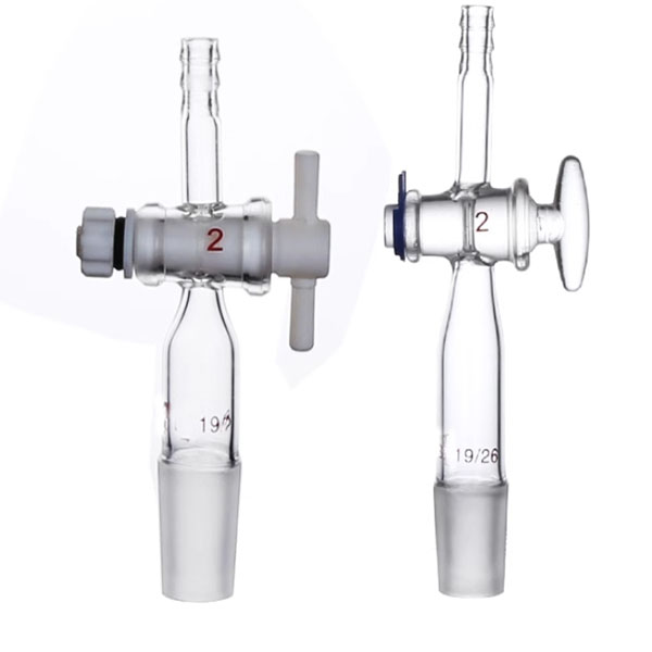 Joint with stopcock and stand ground mouth is an accessory for laboratory glass instruments, usually made of glass, and some pistons are made of materials such as polytetrafluoroethylene. It consists of a standard ground stopper and a joint with a piston. The ground stopper is used to seal the container, and the piston joint can control the flow of liquid or gas. The ground part meets standard specifications, such as 14#, 19#, 24#, etc., and can be tightly connected with instruments such as flasks and conical flasks with the same specifications to ensure the sealing of the device. The piston part can adjust the opening and closing of the channel and the flow rate by rotation, which is convenient for accurately controlling the flow of substances in the experiment. It is often used in experiments such as distillation, fractionation, and gas preparation to achieve precise control of the reaction process or separation process.