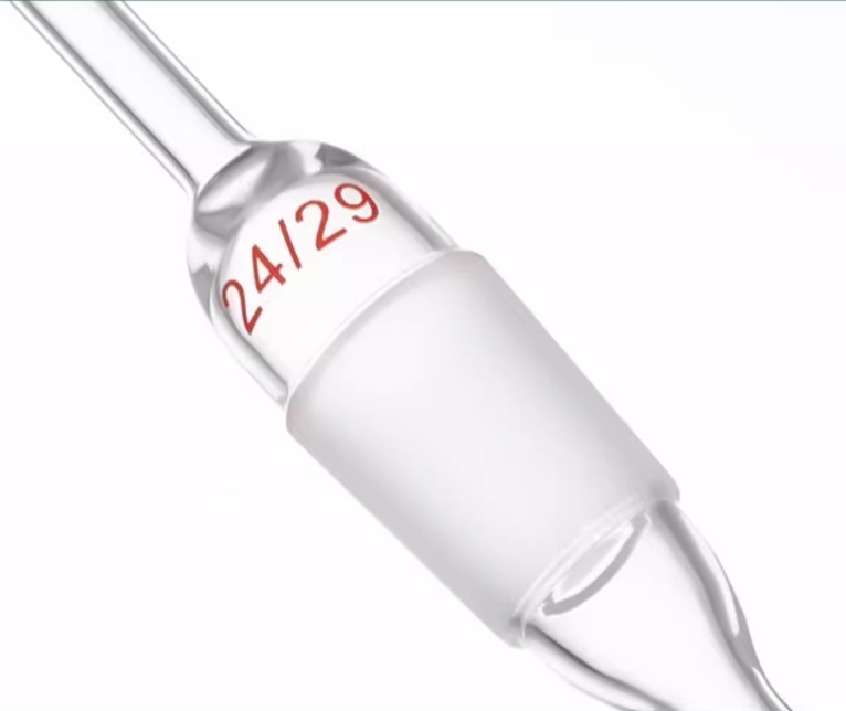 Transmitting gas tube with standard ground mouth is glass instrument accessories used in laboratories to connect different instruments and transmit gases. They are usually made of high borosilicate glass, and the ground-mouth sizes follow unified standards, such as 14#, 19#, 24#, etc. The same specifications of gas tubes from different manufacturers can be matched and connected with other standard ground-mouth instruments, and they are highly versatile. They can withstand certain temperature changes and chemical corrosion, and can adapt to a variety of chemical experimental environments. The ground mouth fits tightly with the grinding plug of the instrument, which can effectively prevent gas leakage, ensure the airtightness of the experimental device, and ensure the accuracy of the experimental results. Transmitting gas tubes with standard ground mouth are mainly used in various experimental devices that require gas transmission.