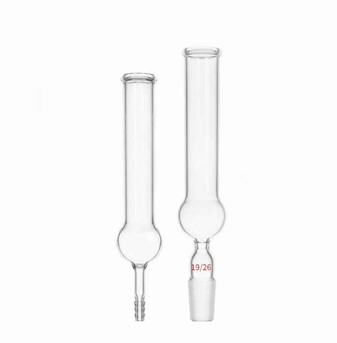 Straight drying tube is a glass instrument used in chemical experiments to dry gas or remove impurities from gas. The main body is a straight glass tube, usually made of high borosilicate glass, with good chemical and thermal stability. One end is with standard ground, with a variety of sizes, such as 14#, 19#, 24#, etc., which can be tightly connected with other standard ground instruments to ensure the sealing of the device. The tube is usually filled with desiccant, such as anhydrous calcium chloride, silica gel, soda lime, etc., which is used to absorb moisture or other impurities in the gas. When the gas containing moisture or impurities passes through the drying tube, the moisture or impurities in the gas are adsorbed or absorbed by the desiccant in the tube, thereby obtaining dry and pure gas.